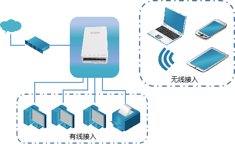倘若把墙面AP安装在宿舍内,覆盖本宿舍和相邻宿舍,相邻宿舍无线信号衰减,上网质量势必大幅降低,且无法接入有线设备。